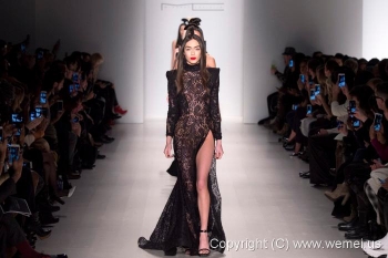 Models walk the runway at Chi Zhang fashion show during New York Fashion Week at Intrepid Sea-Air-Space Museum on February 13, 2017 in New York City.