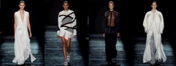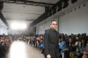 Chinese designer Chi Zhang staged an audaciously energetic debut NYFW show aboard the Intrepid Sea, Air & Space Museum. He’s got a cult following on his home turf, given his leanings toward maximized, deconstructed, gender-amorphous silhouettes.